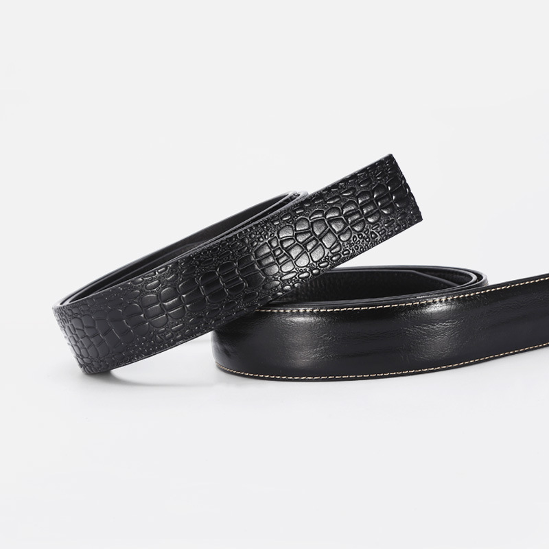 New crocodile pattern pebbled pattern first layer two-layer cowhide men’s automatic buckle belt no buckle belt waist trouser belt wholesale